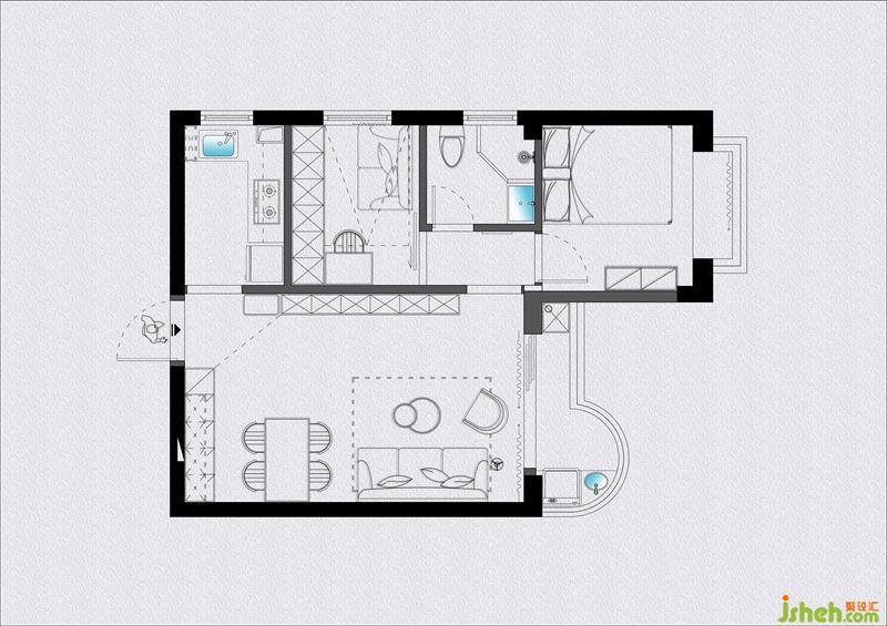 2、改變衛(wèi)生間房門(mén)位置,避免直沖客廳;