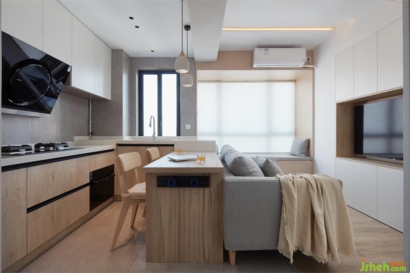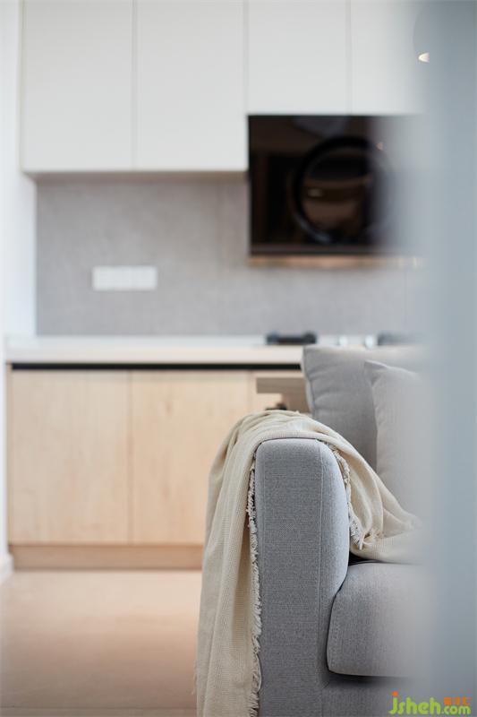 淺色系的廚房,干凈明亮,一個最為煙火氣的地方,也因敞亮的格局而明媚。