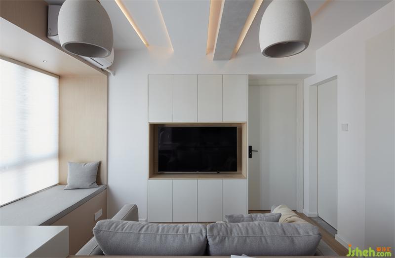 最大化利用空間做收納電視柜鏤空以原木色打破單調視覺,定制了一整面墻的電視柜,配色上沿用白色+原木這對好cp,不僅顏值出眾,儲物能力更是max。