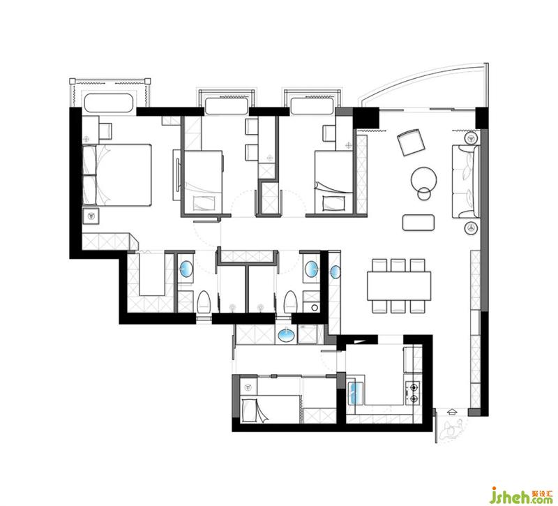 6、空間,拆除墻體,打造保姆房和生活陽臺,優(yōu)化動線;