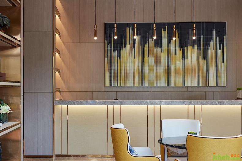 至此,設(shè)計師在色彩、燈光及大面積可視的素材上與其他區(qū)域產(chǎn)生連結(jié),緩解落差感。又用裝飾畫等其余細節(jié)擺件盡量將其還原成“家”的一室,將初到的陌生、疏離從中抽離。