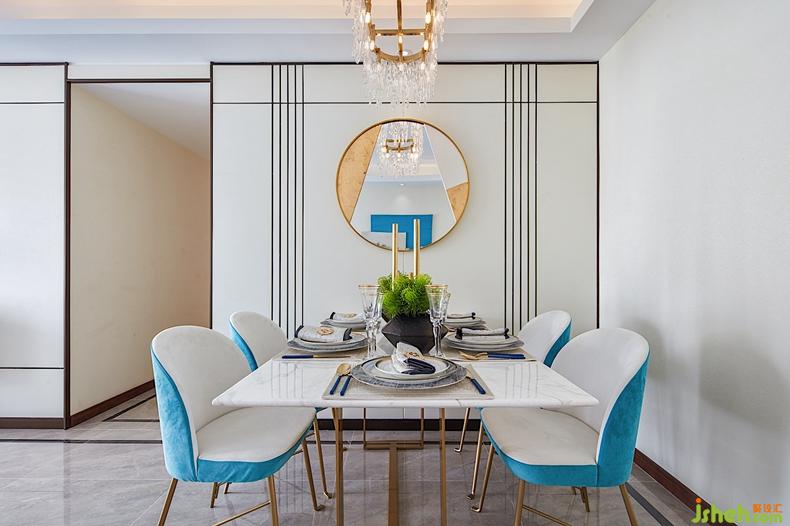 選擇以藍做點綴,舒適的暖素色為基調(diào)