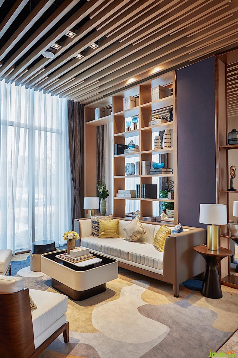 落地窗將窗景引入室內(nèi),增加空間的趣味性,通透感使人置身其中更加放松。入口沙盤吊燈形狀被起伏的山水畫縈繞,將現(xiàn)代都市與自然靜謐的人文生活展現(xiàn)出。設(shè)計公司