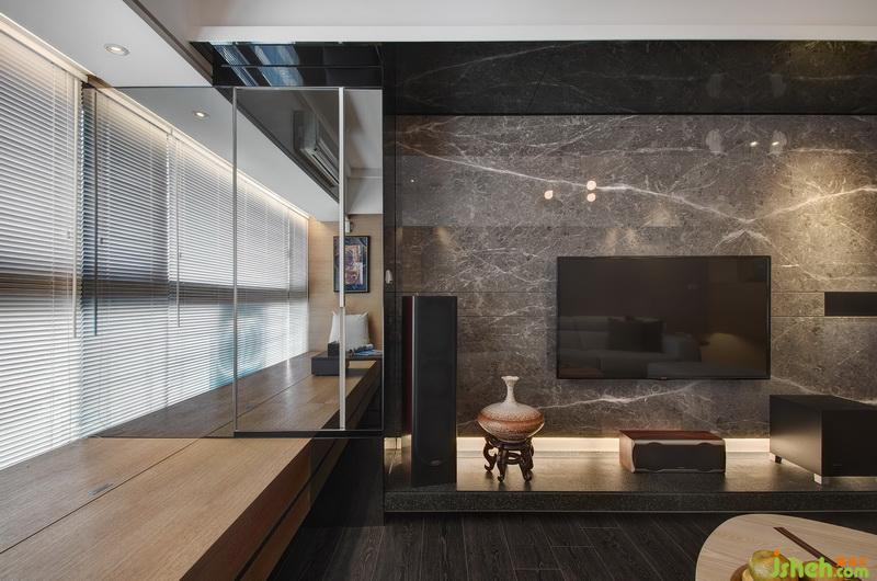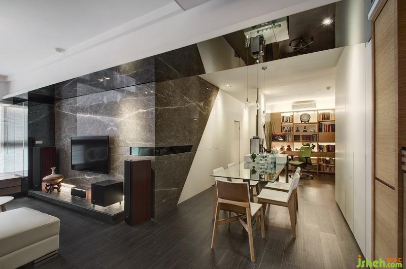 設(shè)計(jì)師藉由大片重色的石材墻面與烤漆墻面的錯(cuò)落分割,勾勒出開(kāi)放空間的序列連續(xù)性,穩(wěn)重厚實(shí)之空間感。