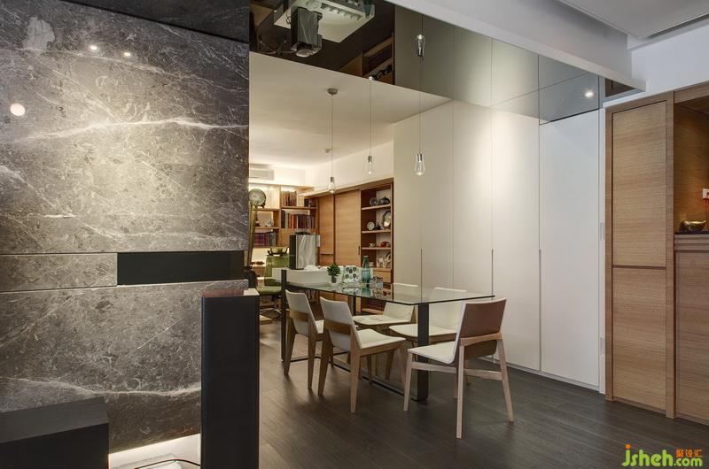 設(shè)計(jì)師將結(jié)構(gòu)即裝飾的思維植入本案,硬設(shè)備均著重造型簡(jiǎn)潔且含納生活機(jī)能,講究工法與選材構(gòu)筑出清新而不失細(xì)致的質(zhì)感。在素簡(jiǎn)的空間里,室內(nèi)設(shè)計(jì)師利用天花板既有梁位局部鋪陳間接光源,并佐以鏡面提升空間高度削弱梁位壓迫感,勾勒出淡淡的幾何線條。