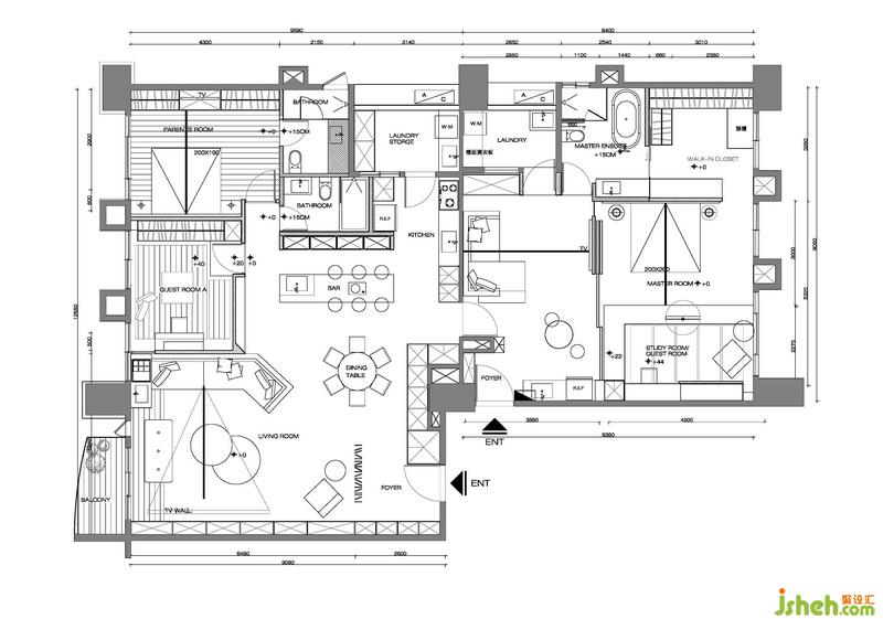 我們設計公司以一個「家」的整體概念包容兩代各自獨立的生活空間,期許有更多的對話在這兩個世代發(fā)生,于是逐漸萌生了「無框對話」的想法:將兩戶打通并打破原本的格局,將七個狹小的房間拆解重新建構成三個獨立機能的生活場所——公共空間、年長夫妻臥室、年輕夫妻臥室。藉由打破既有的格局「框架」,萌生出更寬闊更靈活的「對話」空間。