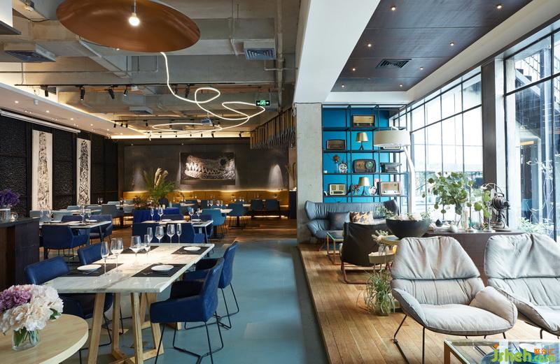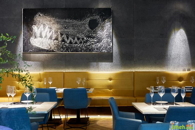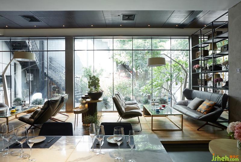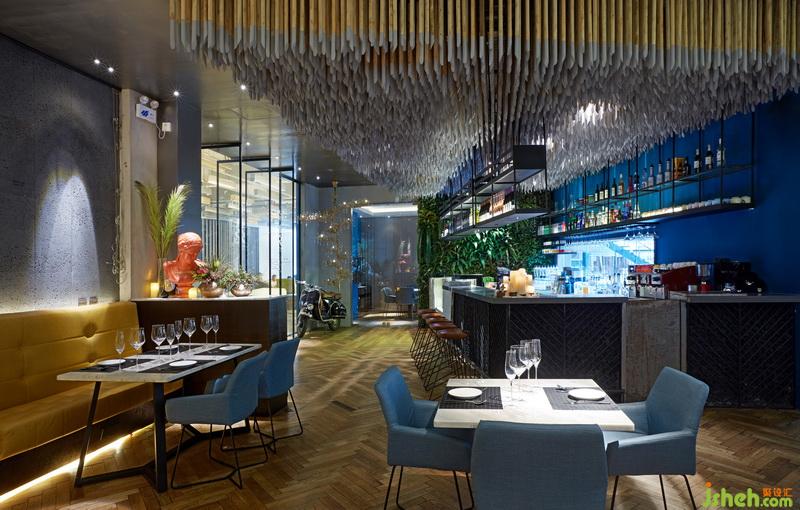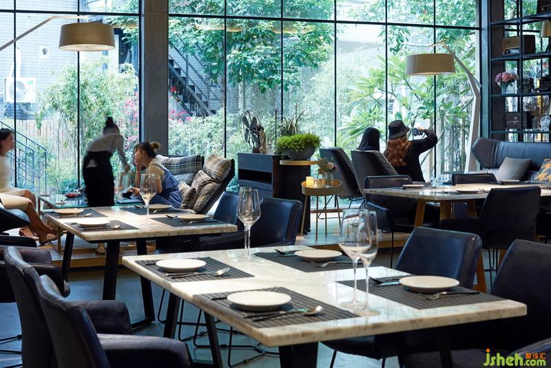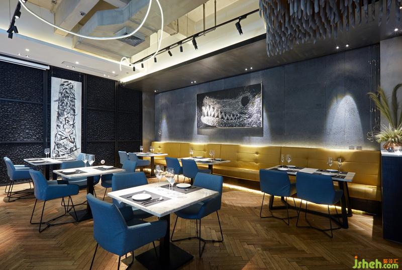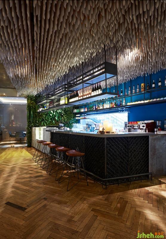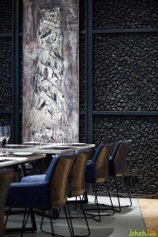 靈感:餐廳雖提供西式料理,但人本質(zhì)上的情感是根植在記憶與生活中,于是室內(nèi)設(shè)計(jì)師萃取部份中國(guó)傳統(tǒng)爐灶文化的精隨,以東方內(nèi)斂而細(xì)膩的手法帶入現(xiàn)代的西式餐飲空間中。例如造型像火種的吊掛裝置是室內(nèi)設(shè)計(jì)師使用廢棄拖把圓木棍,以人工裁切45度的斜角涂上灰色防火涂層,橡木實(shí)木地板是從前老房子使用的老木頭,厚水泥磚堆棧成的墻面也是透過(guò)手工剝離的方式形塑出碳的樣式。