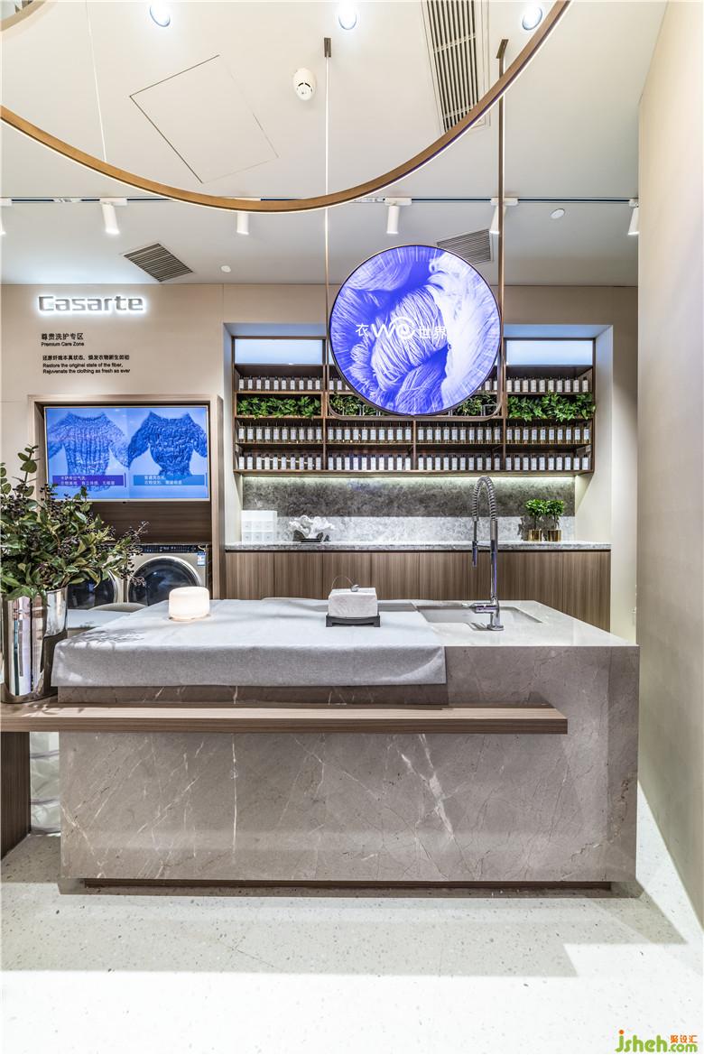 我們從大自然中汲取靈感,取水與光的特性象征洗滌的二大元素--洗凈與熱烘。光是溫暖的擴(kuò)散,水是純凈的流動(dòng),水流之后日光輕撫,感受最自然清新的光合觸動(dòng),這是室內(nèi)設(shè)計(jì)師為卡薩地門市所做的形象設(shè)定,希望顧客能在日光水舞的場(chǎng)域之中,真實(shí)體驗(yàn)并感受卡薩地的品牌價(jià)值。