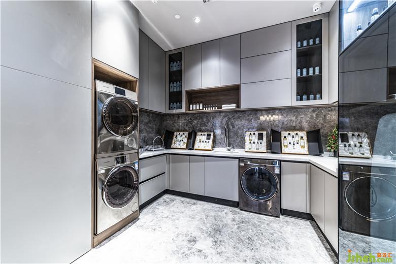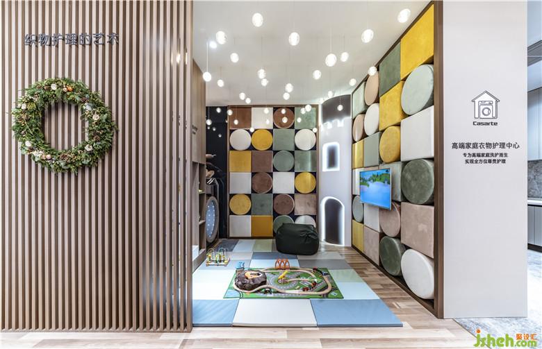 水分子的起伏轉(zhuǎn)化成為懸吊式的光纖燈飾,在兒童區(qū)形成活潑的律動層次,滾筒隧道室內(nèi)設計師則是以洗滌產(chǎn)品的概念為原型設計。順著水渦的流動動線,顧客最終來到休憩區(qū),感受充滿現(xiàn)代與自然的舒適氛圍。