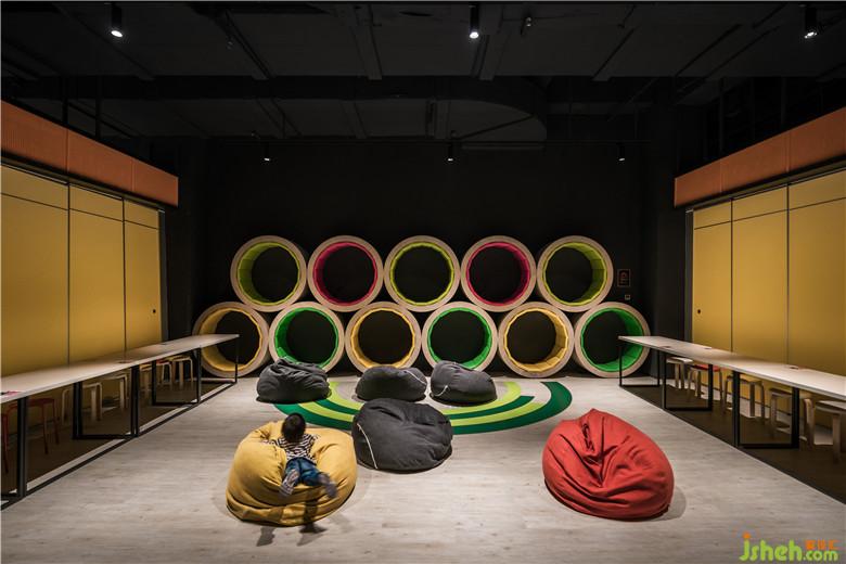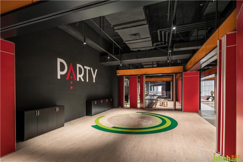5F則以餐飲與PARTY為主軸,延續(xù)公園的概念,利用地面色彩與跑道作為元素的延伸,不同大小的PARTY ROOM以豐富明艷的色彩點(diǎn)燃客戶的視覺(jué)饗宴,并透過(guò)各種活動(dòng)移門滿足各種功能。