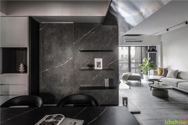 喜歡旅行、時常飛行各地工作的屋主一家人,回到家的第一眼就充滿著慵懶與愜意:低明度色彩的沙發(fā)延伸至窗邊的植栽,家裝設(shè)計與開闊的陽臺形成一幅明亮的風(fēng)景。電視墻以大理石的自然紋面為襯底,下方的木質(zhì)層板展示著屋主收藏的雕塑,生活上的雜物收納則安排在玄關(guān)與餐廳的柜體,客廳僅保留最純粹的機能—簡單放松。