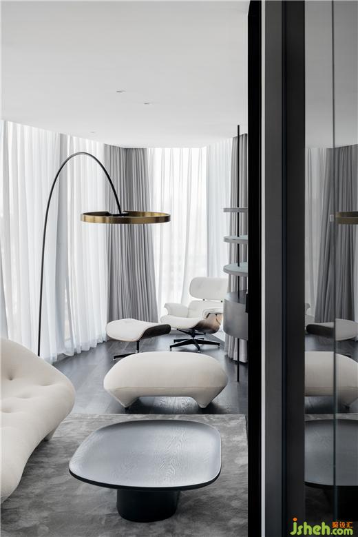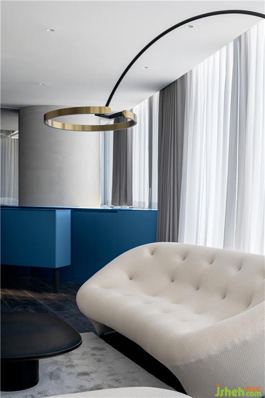 在格局的分配上,我們以生活場(chǎng)域包覆的概念為出發(fā)點(diǎn),辦公室設(shè)計(jì)將辦公區(qū)安排在空間的中心,會(huì)談室、品酒室、書法茶室等休閑區(qū)域以L弧型環(huán)繞,弧線柔和的設(shè)計(jì)語(yǔ)匯,取自于建筑的外觀造型,低飽和度的中性色彩,選搭白色為主的家具軟件,在現(xiàn)代簡(jiǎn)約的質(zhì)地中揉入一抹輕古典的質(zhì)韻,為空間注入典雅的生活氣息,最大的點(diǎn)綴顏色,是來(lái)自于窗外的湛藍(lán)天空,云朵與藍(lán)天,永遠(yuǎn)是這里最愜意的工作端景。