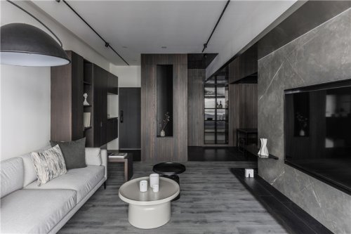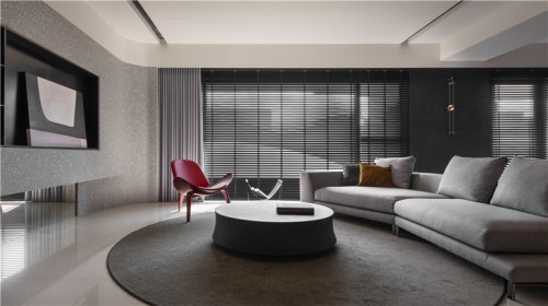 材質(zhì):黑色鐵件、拉絲不銹鋼、淺灰色微水泥、編織地毯、深灰色木地板、水磨石磚、灰色板材、灰藍(lán)色板材(乳膠漆)、深灰色馬來(lái)漆、超白強(qiáng)化玻璃