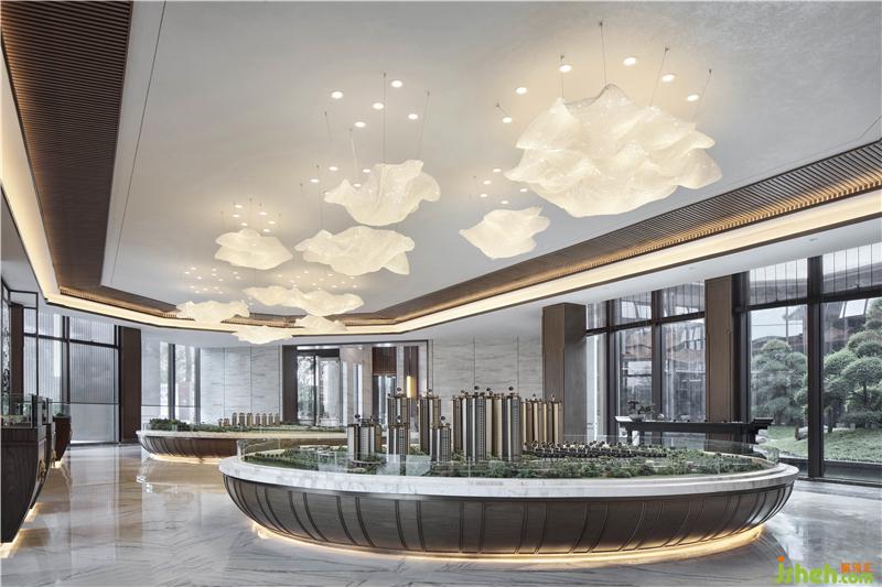 天花飾以肌理涂料增加空間層次感,幾朵起伏有致的水晶荷葉吊燈勾勒于其中,波光粼粼,如一幅水光畫卷徐徐展開,虛靜而澄明,賦予空間樸素純凈的靈性,凝練出當(dāng)代的東方氣質(zhì)。裝修設(shè)計(jì)