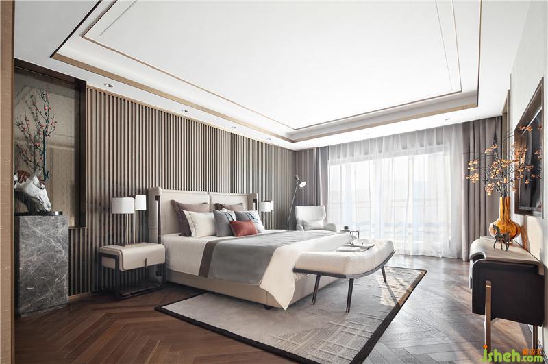 二層次主臥設(shè)計主題為“獨夢桃芳”,床后的格柵屏風增加了自然的氣息,放在床頭的藝術(shù)品《尋夢-獨夢桃芳》更是活躍了整個空間、整體簡約而有韻味。