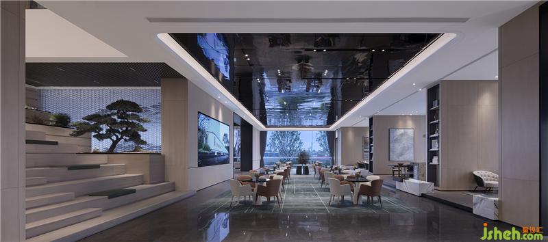 利用整面落地玻璃窗模糊室內(nèi)外的邊界,將室外天高云闊的景觀、配合變幻的光影,最大程度的引入空間內(nèi)部,空間的氣韻流動,深圳售樓處設(shè)計加入觀者的視野,行走之間,四時節(jié)氣,自然變化。