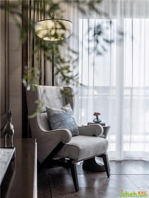 本案“峰湖閣”是一套在廣州有600余平米的半山別墅,三面有景觀墻環(huán)繞,與別墅主體圍合形成一方獨立庭院,因而被樣板房設(shè)計為一處四世同堂的家族私享天地。設(shè)計的基調(diào)是從嶺南建筑及文化中汲取元素,蘊養(yǎng)一方書香門第嶺南世家的人文情懷。
