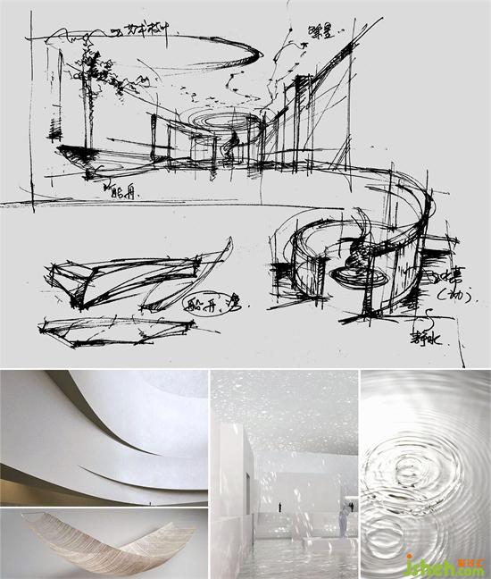 流動(dòng)型墻面塑造的“龍門”延伸環(huán)繞形成無界之合,深圳營銷中心設(shè)計(jì)與水幕的結(jié)合讓空間增加了神秘與靈透的色彩,虛與實(shí)結(jié)合、動(dòng)與靜相生生發(fā)有趣、自由的聯(lián)想,讓這藝術(shù)一隅成為空間游歷的開始,同時(shí)賦予空間勃勃生機(jī)。