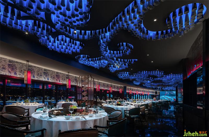 悅江瓷文化主題餐廳,坐落于黃浦江邊上海世博園梅賽德斯文化藝術(shù)中心六層,建筑面積1500平米。餐廳以餐飲作為載體,力求創(chuàng)造出餐飲陶瓷藝術(shù)藝術(shù)館的新空間文化體驗(yàn)。餐廳以清乾隆琺瑯彩虞美人題詩(shī)盌為文化背景,從西洋繪畫(huà)工藝與中國(guó)傳統(tǒng)陶瓷工藝的結(jié)合,找尋出人文美學(xué)東瓷西韻的美學(xué)形式和風(fēng)格在空間中的表達(dá)。