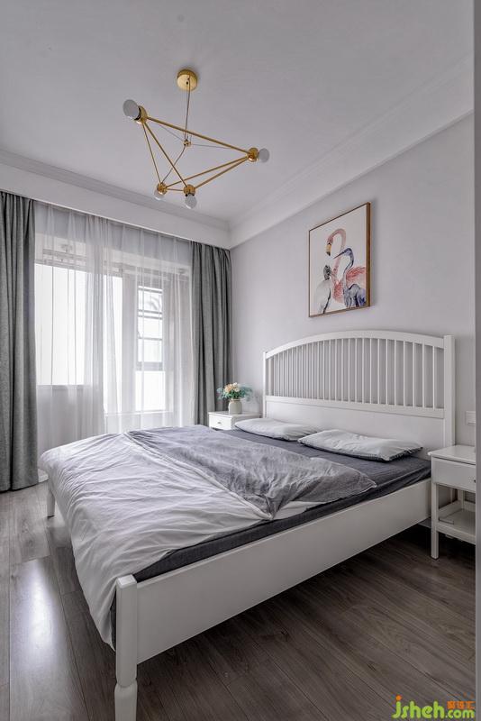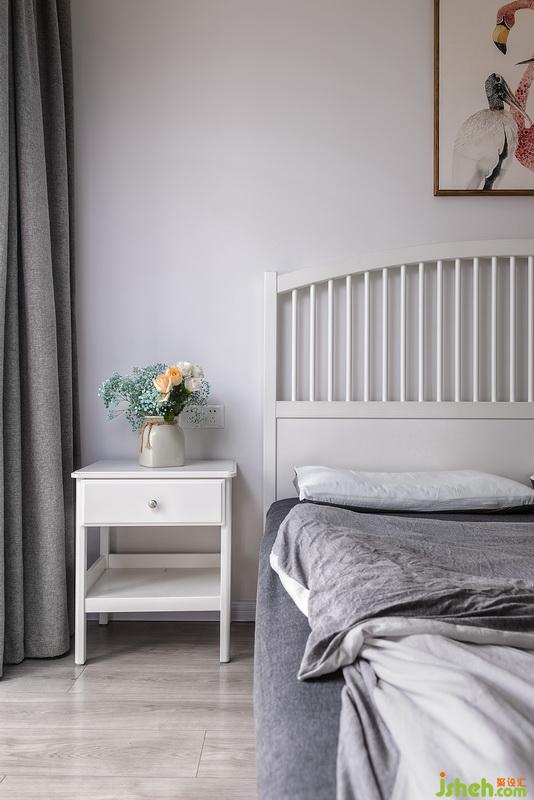 臥室墻刷了淡淡的乳白色,和頂部對比可見層次感。
