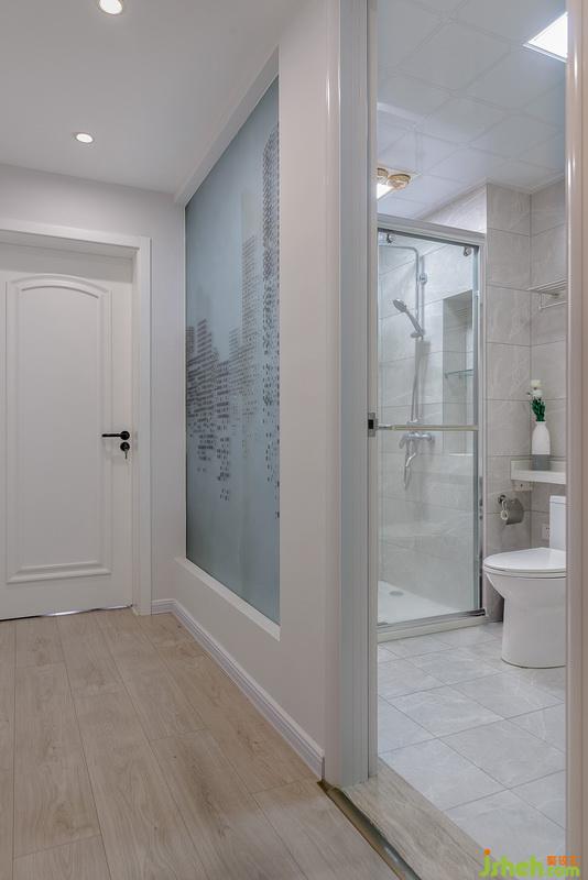 衛(wèi)生間外墻嵌入大面積磨砂玻璃增加通透感,一堵實墻就壓抑很多。