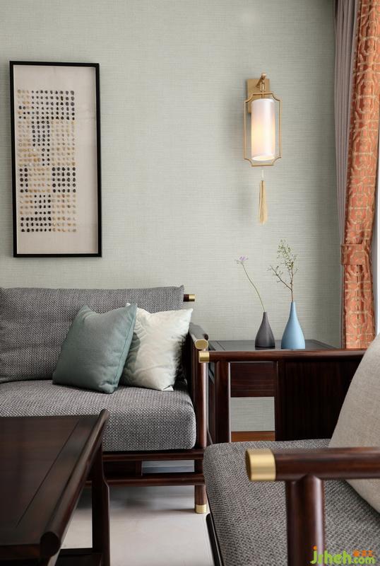 中式家具講究對稱,中矩,色彩上多采用樸素穩(wěn)重的顏色,所以在前期硬裝設(shè)計(jì)的時候就做了好鋪墊,整體墻面選用雅致亮色系做鋪墊。除了家具和局部柜體選擇了深色系,其他用色都相對明朗。