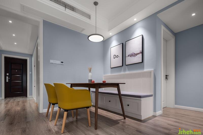 這個(gè)視覺(jué)看餐廳可以看到中央空調(diào),小戶型的空間更是精益求精,如果用上掛機(jī)就會(huì)失色很多。同樣為了節(jié)約空間,靠墻設(shè)計(jì)了卡座,下面可以儲(chǔ)物,上面定制了可曬洗墊子,舒適和實(shí)用都解決了。