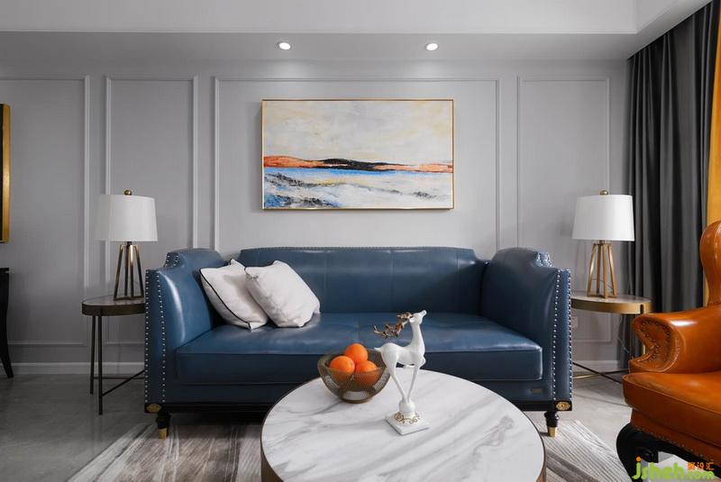 客廳石膏線條上墻,營造輕松簡單的美式氛圍。
