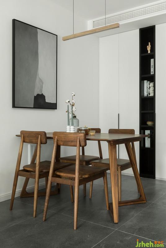 餐廳側(cè)邊墻設(shè)計(jì)了一排柜體,藏和顯相結(jié)合,白和黑有對比。餐桌上配置自帶格調(diào)的小物件,瞬間提升幸福感,坐下來喝一杯茶,和愛人吃一頓燭光晚餐。放下急匆匆的往前趕的步伐,不要忽視了體驗(yàn)當(dāng)下最好的時(shí)光。當(dāng)我想象這一副畫面,心里是暖的,享受職業(yè)帶給我們成就感和滿足感。