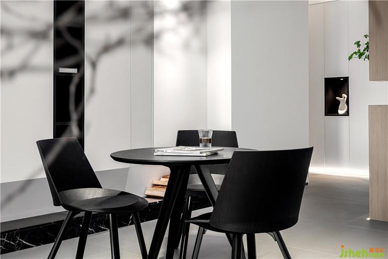 整體顏色以黑、木、白為主,不做多一分的裝飾,虛實留白,方寸之地亦顯空間之寬。