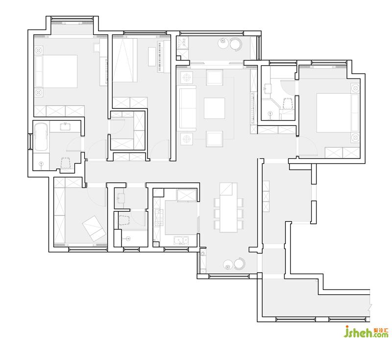本案為精裝修改造,原裝修在風(fēng)格上,色彩上比較形式化,老套,不能滿足業(yè)主的審美和生活追求。