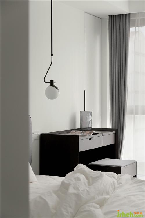 主臥陽(yáng)臺(tái),納入室內(nèi)?;瘖y臺(tái)、休憩椅,不免讓人聯(lián)想到的畫面:女主對(duì)鏡貼花黃,男主凝視兩相望的場(chǎng)景呀。