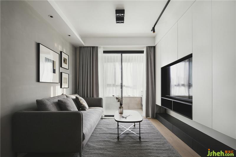 The space is quiet, gray freehand and simple. The storage TV background wall is ready for the future life.