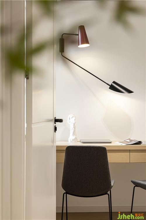 書(shū)房的懸掛式書(shū)桌,與柜體自然銜接,形成一體南京裝修設(shè)計(jì)。
