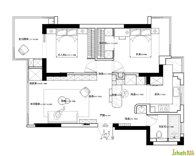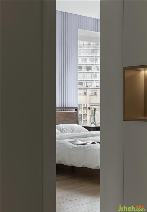 想要一個衣帽間。采用金屬置物架的方式 ,可自由調(diào)節(jié)衣物規(guī)劃區(qū), 配合吊軌移門的形式,打造一個精致的步入式衣帽間。