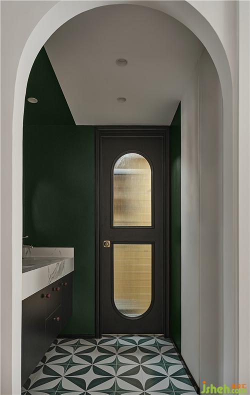 主臥,延續(xù)綠色主題,綠白拼色墻清新自然,給父母一個明亮和煦的休息空間。