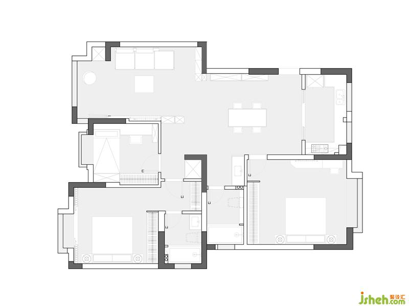 為了改善采光和空間通透,我們把原南面陽(yáng)臺(tái)臥室改造成現(xiàn)在的客廳,把空間打開,以光為媒,讓空氣更加的流通,視覺也更為通透。對(duì)比原來(lái)一堵墻的壓抑,“通”和“透”更讓人有放松愉悅的暢快。