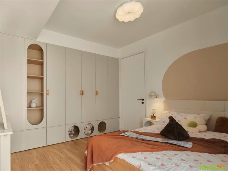 女孩房以俏皮活潑為理念,墻面用粉色點(diǎn)綴,柜子局部形態(tài)可掬,復(fù)式裝修設(shè)計最底下的柜子除了可愛還方便孩子拿取。