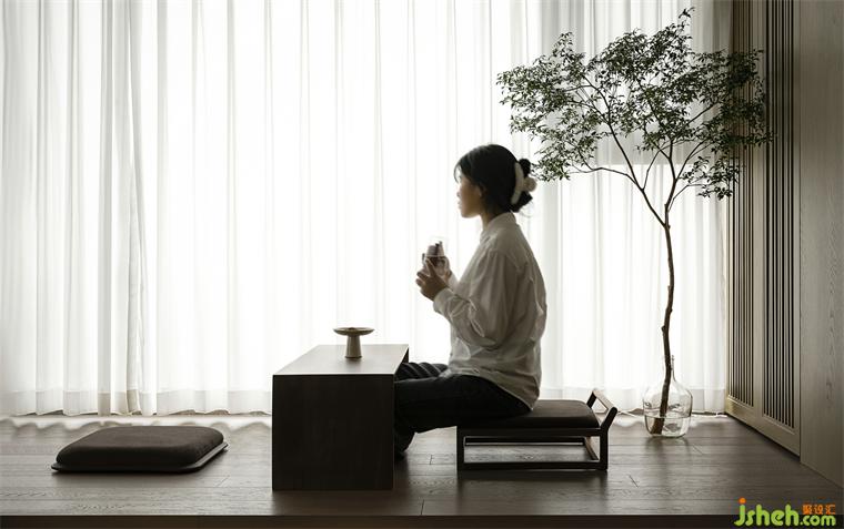 臨窗處設(shè)計(jì)16公分地臺(tái),通鋪地板做休閑區(qū)域,攬城市繁華又安享靜室,豈不美哉。