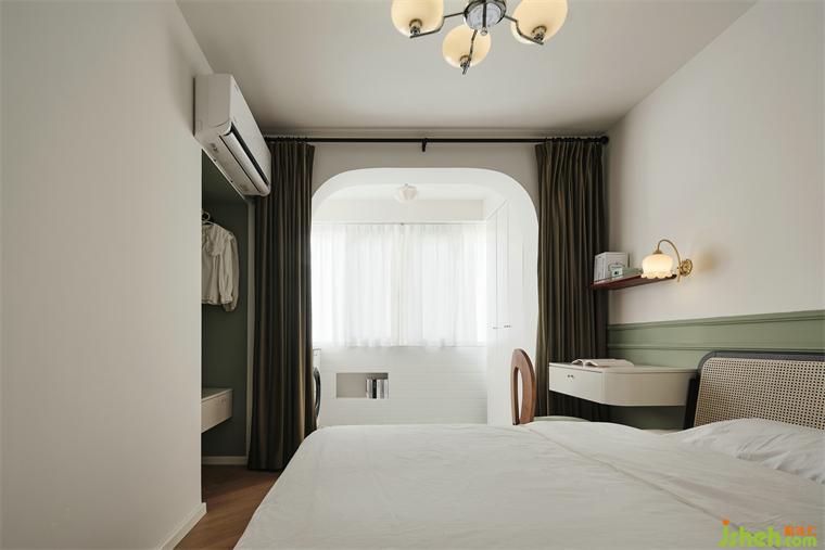 弧形門洞劃分了臥室與陽(yáng)臺(tái)的空間,輕柔的白色紗簾隨風(fēng)搖動(dòng),裝修公司最大程度給予心靈的放松。