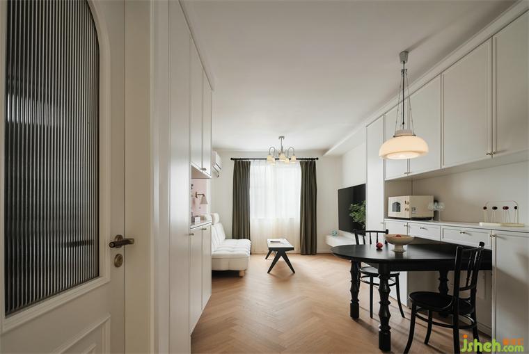 餐廳采用柜體收納式,餐桌嵌入式,增加收納又可以滿足三五好友來(lái)聚餐,秒變大長(zhǎng)桌的實(shí)用性。