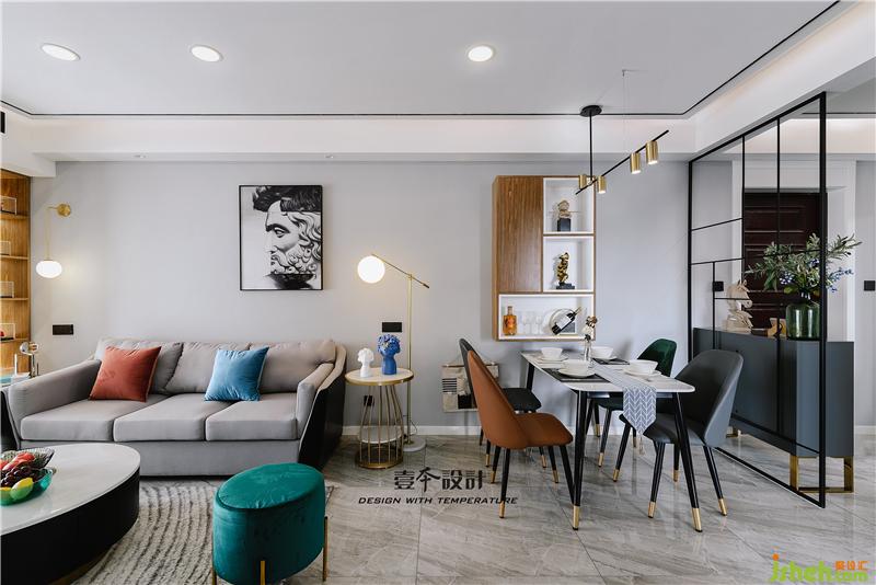 ▲玄關(guān)處一面黑色不銹鋼隔斷很好的分割了入戶玄關(guān)與客餐廳兩個(gè)區(qū)域。一款拼色的玄關(guān)柜撐起了整個(gè)空間的格調(diào),時(shí)尚簡(jiǎn)約的造型,黑色烤漆的臺(tái)面,金色的柜腿設(shè)計(jì),將形式上的意與美結(jié)合,時(shí)尚又不缺乏質(zhì)感。柜子上隨意擺放的馬頭,打破了空間的沉悶感,在燈光的映襯下呈現(xiàn)出完美的視覺(jué)效果。室內(nèi)設(shè)計(jì)師