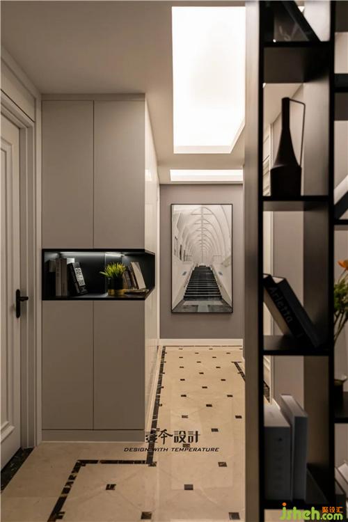 1:因過道采光較弱,增加鞋柜底角燈帶,并暗藏掃地機器人
