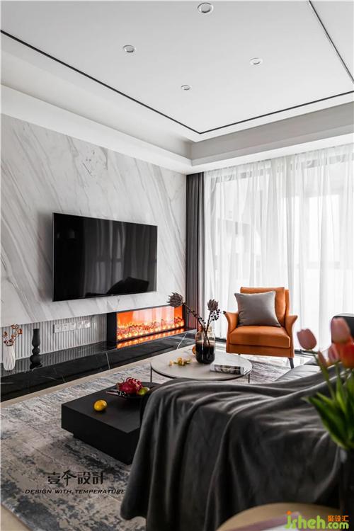 3:將電視背景墻做成大理石,擴大客廳空間感