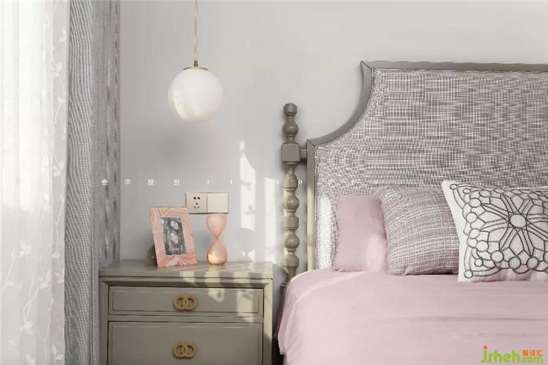 次臥是大女兒房,在灰色的主調里加入了灰粉色,低調文靜的少女風撲面而來。室內設計師