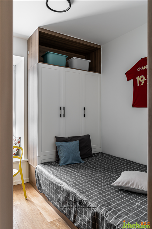 多功能房暫時作為業(yè)主的書房,以后也可以變成兒童房使用。業(yè)主是英超利物浦的忠實球迷,我們在墻上掛了利物浦奪冠紀(jì)念版球衣替代裝飾畫,人文情懷比空洞的畫片更能讓人產(chǎn)生家的共鳴。