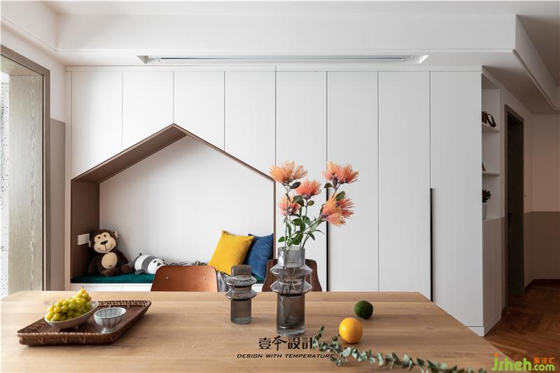 成長(zhǎng)記錄沒(méi)有文案,只有陪伴,親子關(guān)系是家庭關(guān)系中最為重要的一層,孩子是本案創(chuàng)作的第一主角。與外部世界的交流、和家庭的相處以及在自己的世界中玩耍,這些對(duì)孩子來(lái)說(shuō)缺一不可,作為家長(zhǎng)應(yīng)該尊重孩子的想法,平等的和他們交流。本案業(yè)主陽(yáng)老師是一名幼兒園老師,所以她更懂孩子的需求,更注重與自己孩子的相處模式。室內(nèi)設(shè)計(jì)師為了能給兩個(gè)寶貝營(yíng)造更自由更寬闊的活動(dòng)空間,我們?nèi)サ舫R?guī)的客廳沙發(fā)布局,以樹(shù)洞的場(chǎng)景化設(shè)計(jì)為創(chuàng)作靈感,賦予空間趣味性,讓父母陪伴孩子一起快樂(lè)成長(zhǎng)。