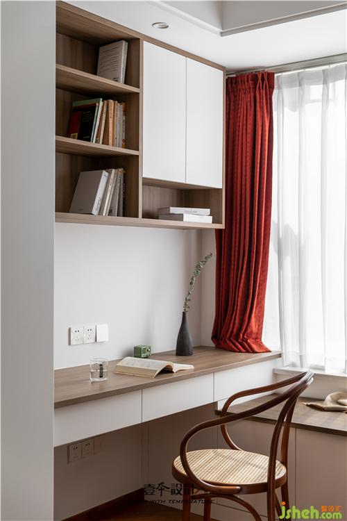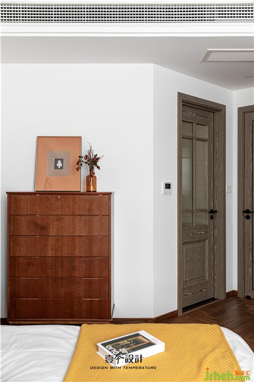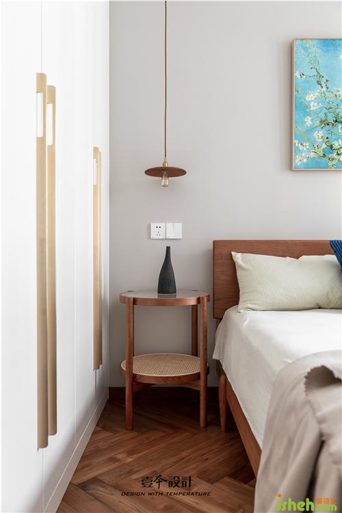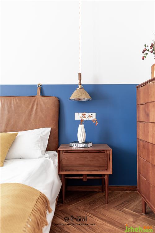 主臥藍(lán)色背景和黃色抱枕的結(jié)合,使空間看起來(lái)不枯燥,能夠感受到活潑新鮮感。牛皮靠背的真皮床,簡(jiǎn)約中融合了品質(zhì)、藝術(shù)與功能實(shí)用。衣柜旁還有一處休閑區(qū),休閑舒適的氛圍不失空間的功能性與沉穩(wěn)感,光影交錯(cuò),在飄窗上灑下一米陽(yáng)光。