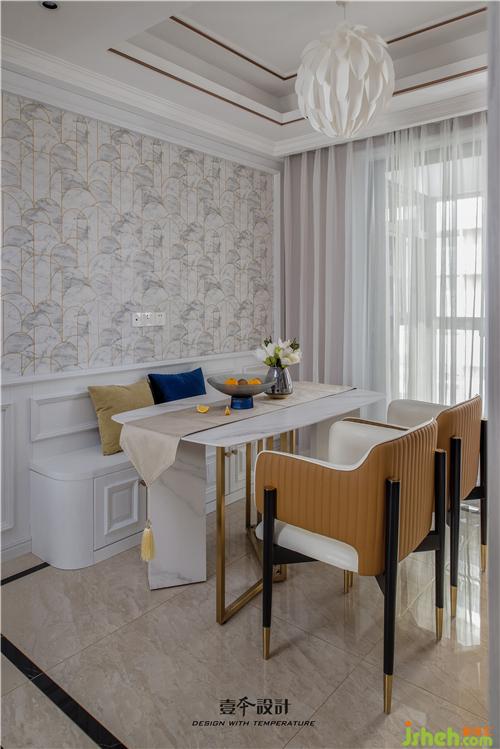 卡座餐廳時(shí)尚又實(shí)用,卡座下面可以做儲(chǔ)藏柜,上面放上抱枕,溫馨感瞬間提升。輕奢精致的餐桌椅,室內(nèi)設(shè)計(jì)師在金屬、石材與皮藝質(zhì)感的結(jié)合搭配下,呈現(xiàn)出有儀式感的用餐氛圍。