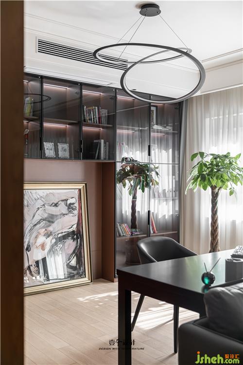 客廳沙發(fā)背后打造成為休閑的書(shū)房區(qū)域,室內(nèi)設(shè)計(jì)師用沙發(fā)與書(shū)桌將區(qū)域分隔,在這里看看書(shū)沐浴陽(yáng)光,好不愜意。現(xiàn)在落地畫擺放的位置是將來(lái)為孩子們預(yù)留放鋼琴的地方。
